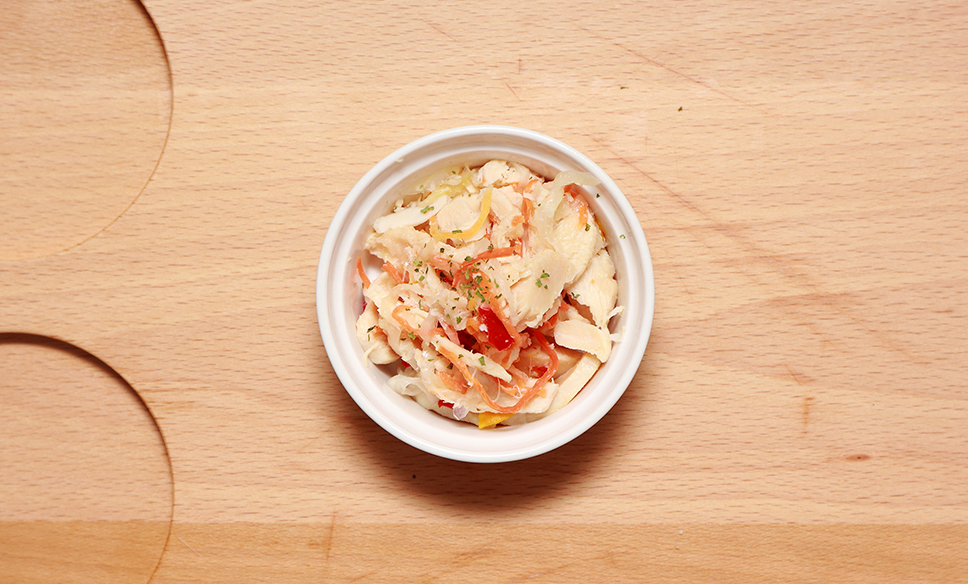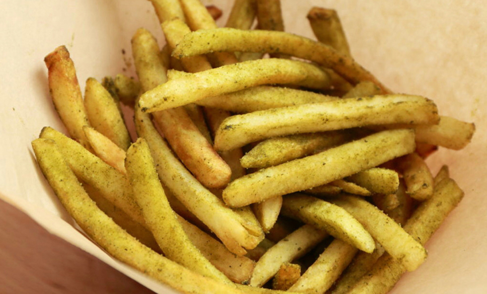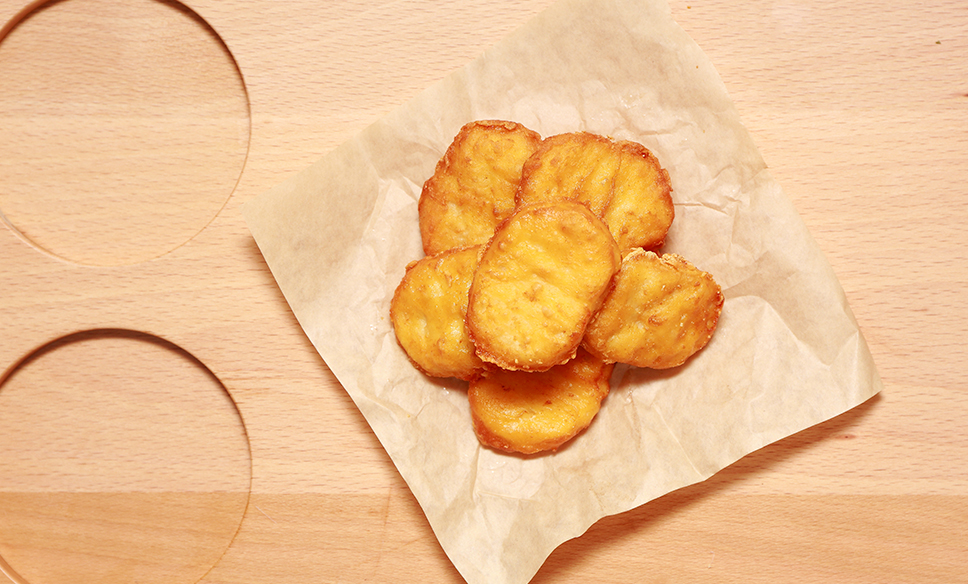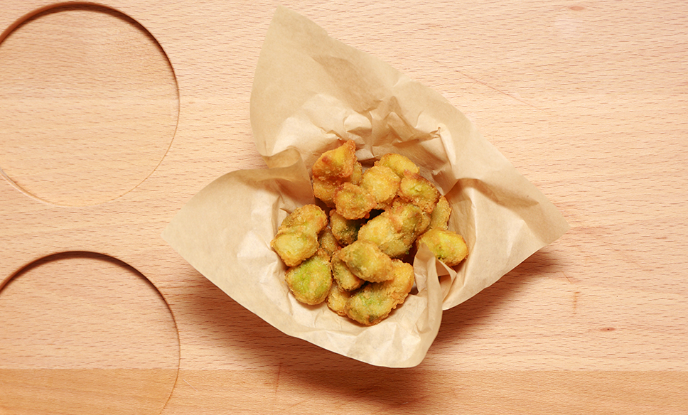 Happ. では、オリーブオイルを使って低温でじっくりと揚げています。