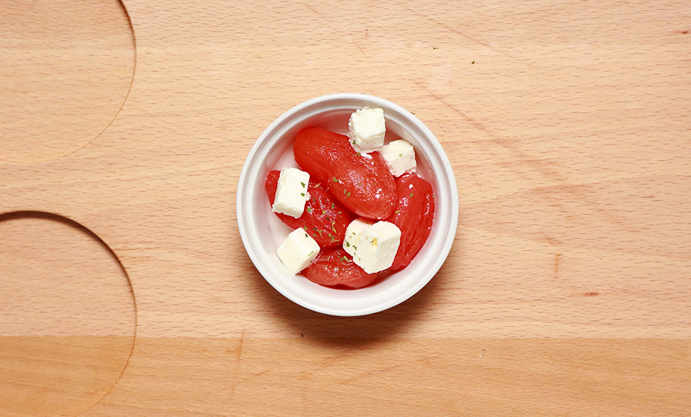 自家製のセミドライトマトとコクのあるタレッジョチーズをのせて焼き上げました。