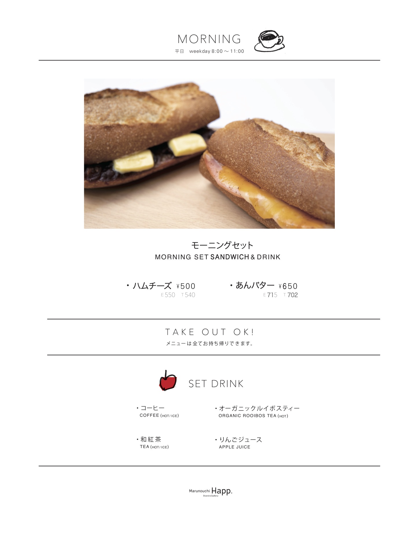 MORNING SET ¥550~ サンドイッチ+ドリンク