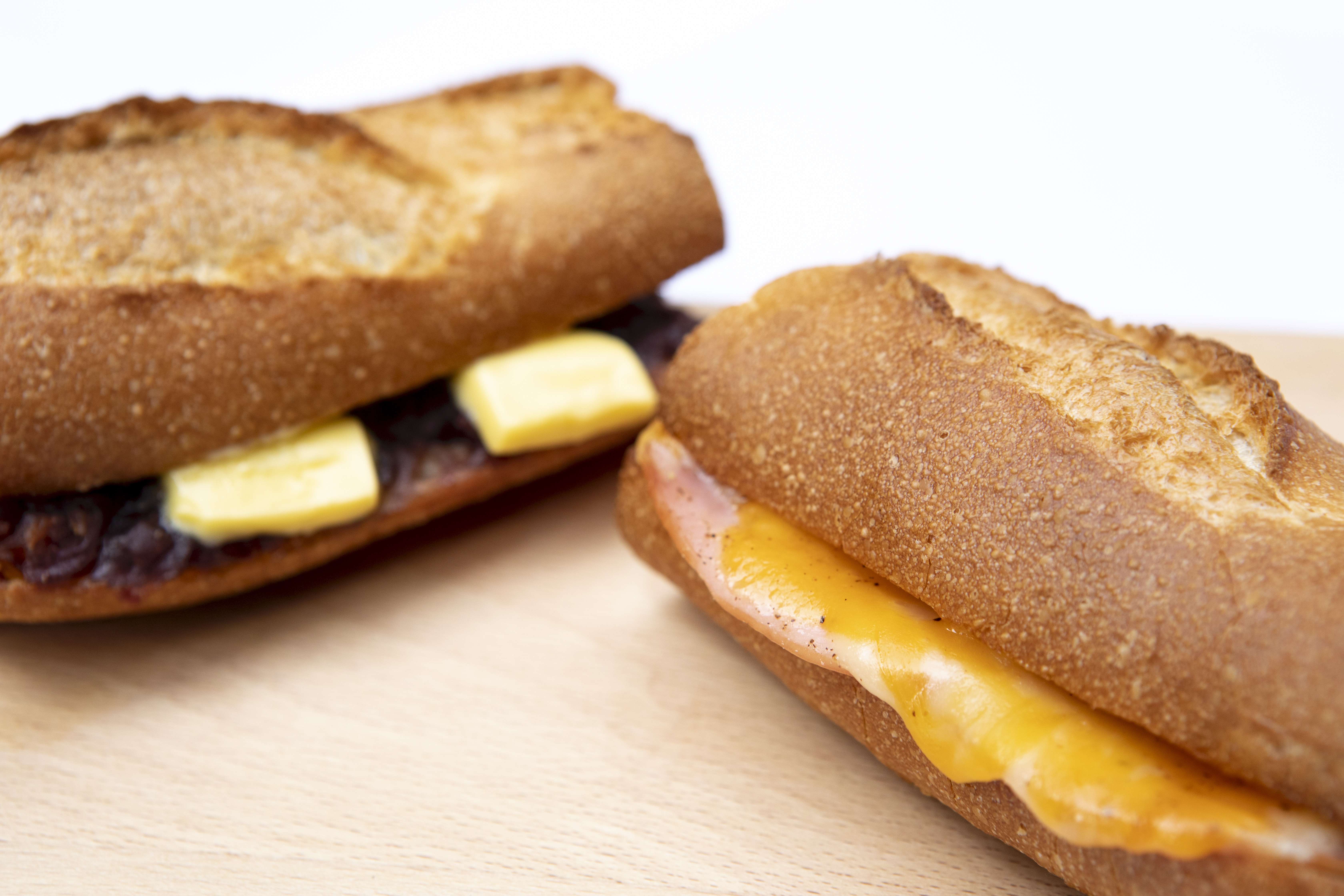 平日限定。ハムチーズサンドイッチ、あんバターサンドイッチからお選びいただけます。