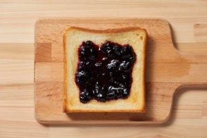 北海道産小麦100%のHapp.オリジナル食パンのトーストに北海道産ハスカップのジャムを添えました。