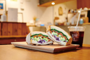 スモークサーモンとアボカドのサンドイッチ- 自家製タルタルとセロリペースト –¥900(+tax)